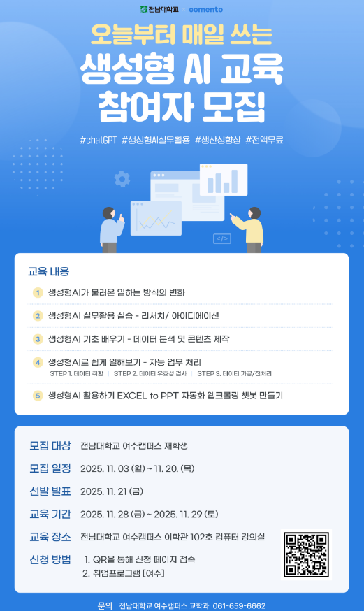 [취업정보][여수] 2025학년도 생성형 AI 프롬프트 엔지니어 교육과정 1회차 11.28.(금) 6시간 과정
